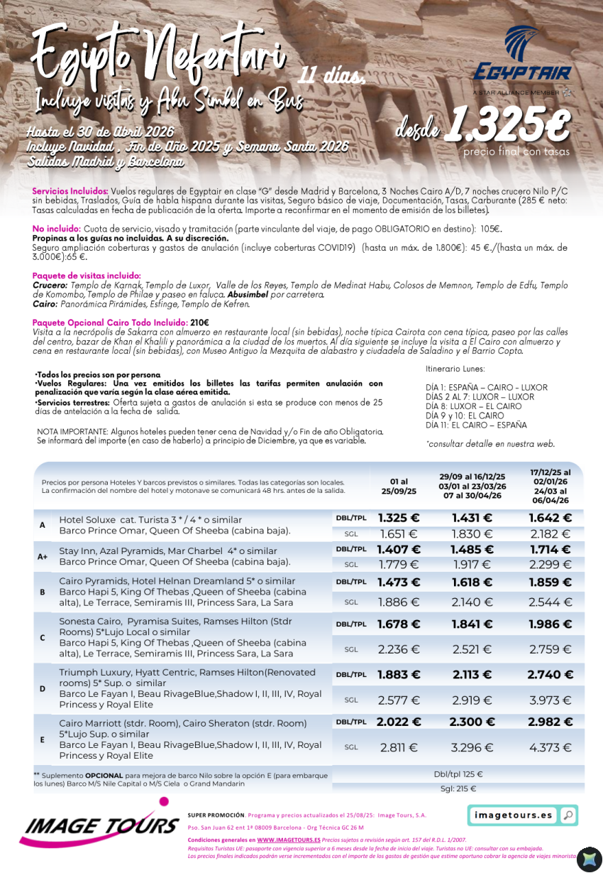 Nefertari hasta abril 2026, 11 días de viaje a Egipto desde 1.325€
