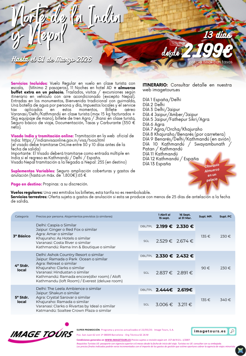 Norte de India y Nepal, 13 días hasta marzo 2026 desde 2199€